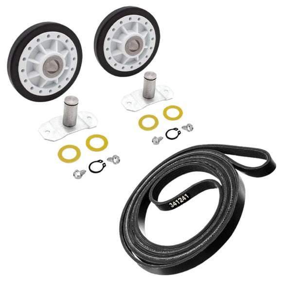 341241 Dryer Drum Belt & LA-1008 Dryer Rear Drum Roller Kit Compatible with Top Brands Replaces with 31531589, 660997, 3389628, S2162268, EAP2162268,694868